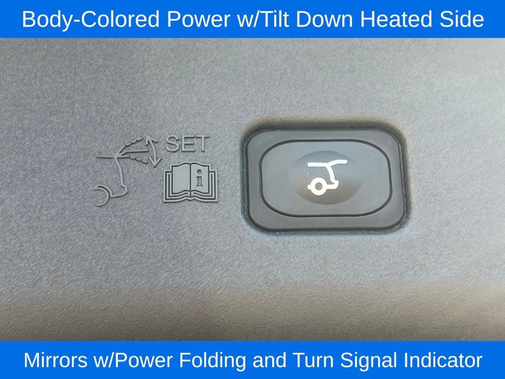 - Body-Colored Power w/Tilt Down Heated Side Mirrors w/Power Folding and Turn Signal Indicator