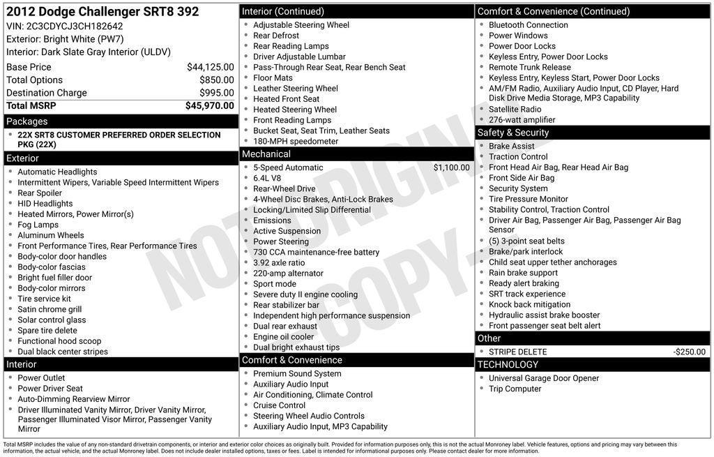 2012 Dodge Challenger SRT8 392 in Bright White Clearcoat vehicle highlights include.., AUTOMATIC, QUALITY.