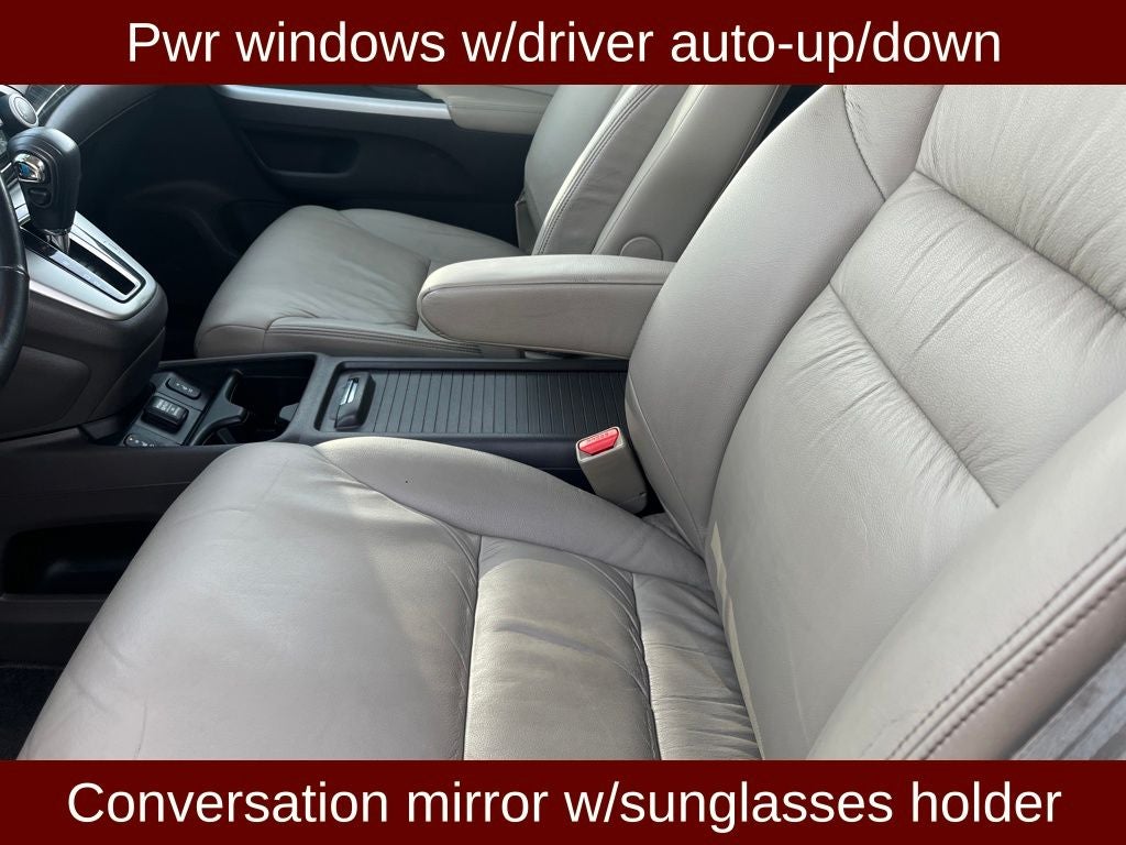 2012 Honda CR-V EX-L in Gray vehicle highlights include.., CLEAN CAR FAX, LOW MILES, AWD, MOONROOF, BACK UP CAM / REAR VIEW CAMERA, DUAL AC, REMOTE KEYLESS ENTRY, ILLUMINATED ENTRY, AUTOMATIC, DAY TIME RUNNING LAMPS, REMOTE USB, SIRIUS XM*, Bluetooth®, AUXILLARY INPUT, POWER AMPLIFIED SYSTEM, TIE DOWN HOOKS, PREMIUM FOG LIGHTS, 12V POWER POINTS, QUALITY, PREMIUM LEATHER TRIMMED SEATING, POWER DRIVER SEAT, SPORT SEATS, HEATED SEATS, CHILD PROOF REAR DOOR LOCKS, LATCH* CHILD SAFETY SYSTEM, HALOGEN HEADLIGHTS, POWERED RACK & PINION, T.P.M.S., CARGO LIGHTING, CARGO SHADE, ROOF RACKS, HILL START ASSIST, ACTIVE BRAKE ASSIST, REAR PRIVACY GLASS, VEHICLE SAFETY SYSTEM, IMMOBILIZER, 2.4L I4 DOHC 16V i-VTEC, 5-Speed Automatic, AWD, 17 x 6.5 Alloy Wheels, 4.44 Axle Ratio, 7 Speakers, Air Conditioning, Alloy wheels, Automatic temperature control, Brake assist, Compass, Delay-off headlights, Driver vanity mirror, Driver's Seat Mounted Armrest, Electronic Stability Control, Exterior Parking Camera Rear, Front anti-roll bar, Front Bucket Seats, Front dual zone A/C, Front fog lights, Front reading lights, Heated door mirrors, Heated Reclining Front Bucket Seats, Illuminated entry, Leather Shift Knob, Leather-Trimmed Seats, Low tire pressure warning, Outside temperature display, Overhead console, Passenger seat mounted armrest, Power door mirrors, Power moonroof, Power windows, Radio data system, Radio: AM/FM/CD Audio System w/XM Radio, Rear anti-roll bar, Rear seat center armrest, Rear window defroster, Rear window wiper, Remote keyless entry, Roof rack: rails only, Security system, Speed control, Speed-Sensitive Wipers, Split folding rear seat, Steering wheel mounted audio controls, Tachometer, Trip computer, Variably intermittent wipers.