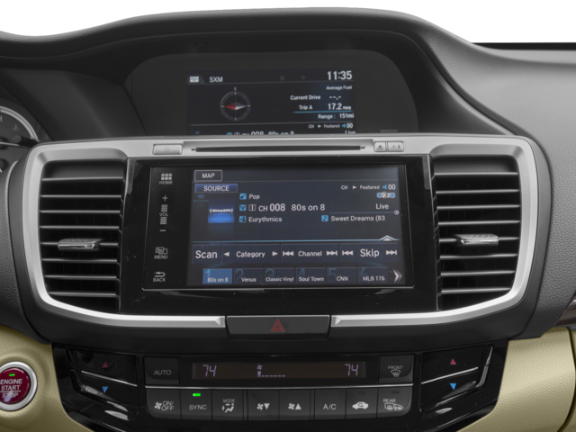 - Radio: 360-Watt AM/FM/CD Premium Audio System -inc: 7 speakers, subwoofer, i-MID w/high-resolution WVGA (800x480) screen, Bluetooth HandsFreeLink and Bluetooth streaming audio, Pandora compatibility, SMS text message function, MP3/Windows Media Audio (WMA) playback compatibility, Radio Data System (RDS), Speed-Sensitive Volume Control (SVC), USB audio interface w/1.5-amp charging port in front and 1.0-amp charging port in center console, 7" Display Audio w/high-resolution WVGA (800x480) electrostatic touch-screen and customizable feature settings, SiriusXM radio, HD radio, Honda satellite-linked navigation system w/voice recognition, Honda HD digital traffic, and Song By Voice® (SBV)