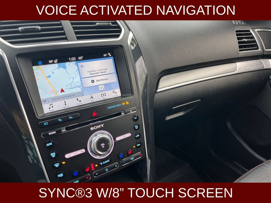 2018 Ford Explorer Sport in White Platinum vehicle highlights include.., 4WD, VOICE ACTIVATED NAVIGATION w/TOUCH SCREEN, TWIN PANEL MOON ROOF, BLIS W/CROSS-PATH PROTECTION, 180* CAMERA, REAR VIEW CAMERA w /REVERSE SENSING, ADAPTIVE CRUISE CONTROL, LANE KEEPING, DUAL AC, PUSH BUTTON IGNITION, REMOTE KEYLESS ENTRY, ILLUMINATED ENTRY, AUTOMATIC, MEMORY GROUP, POWERED TELESCOPING STEERING WHEEL, LED SIGNATURE LIGHTING, RAIN SENSING WIPERS, TERRAIN MANAGEMENT SYSTEM, SIRIUS XM*, 8. PREMIUM TOUCH SCREEN, SONY PREMIUM AUDIO, SYNC CONNECT, AUTOMATIC DIMMING REAR VIEW MIRROR, 110V POWER OUTLET(S), CLASS lll TRAILER HITCH, TRAILER SWAY CONTROL, QUALITY, PREMIUM LEATHER TRIMMED SEATING, MEMORY DRIVER SEAT, POWER SEATS, SPORT SEATS, HEATED & COOLED FRONT SEATS, VENTILATED SEATS, 2ND ROW BUCKET SEATS, POWER FOLD 3rd ROW, LATCH* CHILD SAFETY SYSTEM, ADVANCETRAC* W/RSC, AUTOMATIC HEADLIGHTS, LED TAIL LIGHTS, CAPLESS FUEL EZ FILL, DUAL EXHAUST w/CHROME TIPS, SPORT SUSPENSION, T.P.M.S., SECURICODE*, HILL START ASSIST, ILLUMINATED SCUFF PLATES, SOS POST CRASH ALERT, UNIVERSAL GARAGE REMOTE, 3.5L V6, 6-Speed Automatic with Select-Shift, 110V/150W AC Power Outlet, 12 Speakers, 2nd Row Bucket Seats w/Power-Assist Fold, 2nd Row Heated Seats, 3.16 Axle Ratio, 3rd row seats: split-bench, ABS brakes, Adaptive Cruise Control & Fwd Collision Warning, Alloy wheels, AM/FM radio: SiriusXM, Ambient Lighting, AppLink/Apple CarPlay and Android Auto, Auto High-Beam Headlights, Auto-dimming Rear-View mirror, Automatic temperature control, BLIS Blind Spot Information System, Brake assist, Bumpers: body-color, CD player, Compass, Delay-off headlights, Driver vanity mirror, Dual 2nd Row Smart Charging USB, Electronic Stability Control, Emergency communication system: SYNC 3 911 Assist, Exterior Parking Camera Rear, Ford Safe & Smart Package, Four wheel independent suspension, Front 180 Degree Camera w/Split View & Washer, Front anti-roll bar, Front Bucket Seats, Front Center Armrest, Front dual zone A/C, Front fog lights, Front reading lights, Fully automatic headlights, Heated door mirrors, Heated steering wheel, Illuminated entry, Inflatable Rear Safety Belts, Knee airbag, Lane-Keeping System, Leather steering wheel, Low tire pressure warning, Memory Feature, Outside temperature display, Overhead console, Panic alarm, Passenger vanity mirror, Perforated Leather Heated Bucket Seats, Perforated Leather Heated/Cooled Bucket Seats, Power door mirrors, Power Liftgate, Power Tilt/Telescoping Steering Wheel, Power windows, Premium audio system: Sony, Radio data system, Radio: Premium Sound from Sony, Radio: Sony Audio System w/CD Player, Rain-Sensing Wipers (Front Only), Rear air conditioning, Rear anti-roll bar, Rear reading lights, Rear seat center armrest, Rear window defroster, Rear window wiper, Remote Control Front Windows, Remote keyless entry, Security system, Speed control, Speed-sensing steering, Speed-Sensitive Wipers, Split folding rear seat, Spoiler, Steering wheel mounted audio controls, SYNC 3 Communications & Entertainment System, Tachometer, Traction control, Turn signal indicator mirrors, Twin Panel Moonroof, Universal Garage Door Opener (UGDO), Variably intermittent wipers, Wheels: 20 Premium Dark Tarnish-Painted Aluminum.