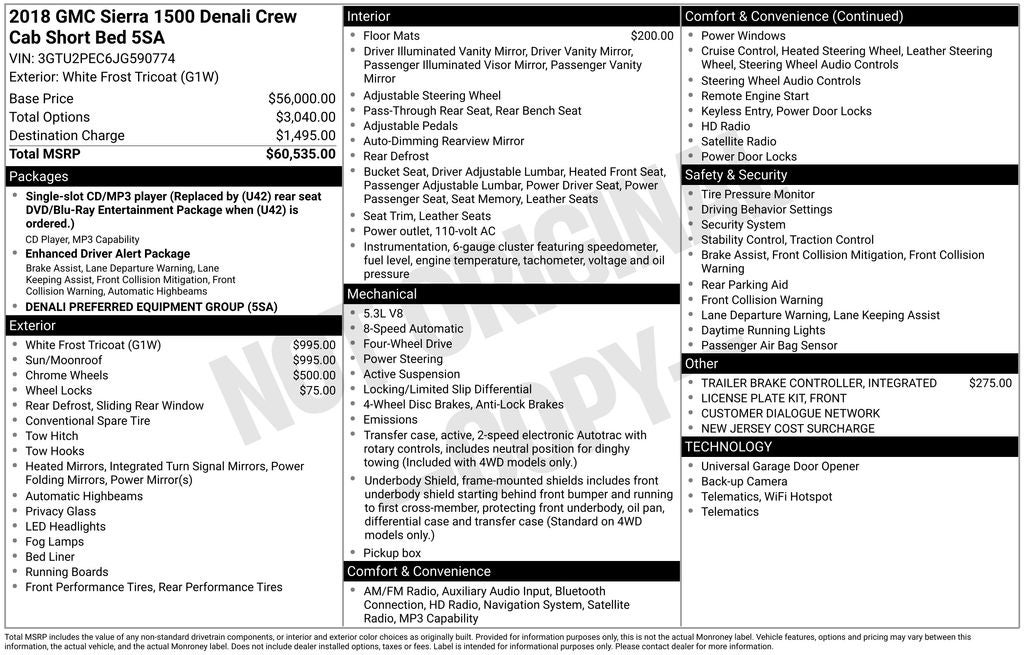 2018 GMC Sierra 1500 Denali in White Frost Tricoat vehicle highlights include.., AUTOMATIC, QUALITY, 8-Speed Automatic with Overdrive, 4WD, Cocoa/Dark Sand Leather.