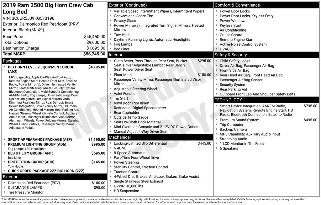 2019 Ram 2500 Big Horn in Delmonico Red Pearlcoat vehicle highlights include.., FORD BLUE CPO, CLEAN CAR FAX, AUTOMATIC, QUALITY.