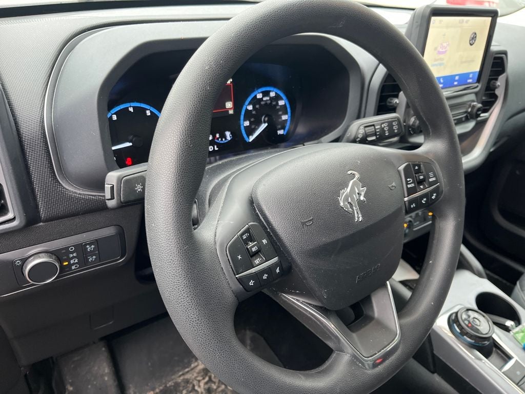 2022 Ford Bronco Sport Big Bend in Alto Blue Metallic Tinted Clearcoat vehicle highlights include.., CERTIFIED READY, 1 OWNER, ACCIDENT FREE, SUPER LOW MILES, 4WD, FORD CO-PILOT 360*, REAR VIEW CAMERA w /REVERSE SENSING, REAR VIEW CAMERA w/WASHER, INTELLIGENT ACCESS W/PUSH BUTTON START, REMOTE KEYLESS ENTRY, ILLUMINATED ENTRY, AUTOMATIC, TERRAIN MANAGEMENT SYSTEM, USB(A) & USB(C), SIRIUS XM*, 8. PREMIUM TOUCH SCREEN, FORDPASS CONNECT, SYNC®3 W/APPLINK, SUPPLEMENTAL PTC HEATER, 12V POWER POINTS, WIRING PREP-PACK, POWERED & HEATED MANUAL FOLD MIRRORS, QUALITY, MOLLE STRAP SYSTEM, LATCH* CHILD SAFETY SYSTEM, ADVANCETRAC* W/RSC, LED AUTO HEADLIGHTS, LED AUTOMATIC HIGH/LOW BEAMS, LED TAIL LIGHTS, CAPLESS FUEL EZ FILL, T.P.M.S., SECURILOCK*, REFRESH 95, RUBBERIZED CARGO FLOOR, LIFTGATE w/LIFTGLASS, FLOOD LIGHT ADJ LIFTGATE, SOS POST CRASH ALERT, FLOOR LINERS -w/o CARPET MATS / ROWS 1&2, 1.5L EcoBoost, 8-Speed Automatic, 3.80 Axle Ratio, 4G LTE Wi-Fi Hotspot Credit, 6 Speakers, ABS brakes, Air Conditioning, Alloy wheels, AM/FM Stereo, Auto High-beam Headlights, Automatic temperature control, Brake assist, Compass, Delay-off headlights, Driver vanity mirror, Electronic Stability Control, Emergency communication system: SYNC 3 911 Assist, Four wheel independent suspension, Front & Rear Floor Liners, Front anti-roll bar, Front Bucket Seats, Front Center Armrest, Front reading lights, Fully automatic headlights, Heated door mirrors, Illuminated entry, Low tire pressure warning, Occupant sensing airbag, Outside temperature display, Overhead console, Panic alarm, Passenger vanity mirror, Power door mirrors, Radio data system, Rear anti-roll bar, Rear reading lights, Rear seat center armrest, Rear window defroster, Rear window wiper, Remote keyless entry, Roof rack: rails only, Security system, SiriusXM Radio, Speed control, Speed-sensing steering, Speed-Sensitive Wipers, Split folding rear seat, Steering wheel mounted audio controls, SYNC 3 Communications & Entertainment System, SYNC 3/Apple CarPlay/Android Auto, Tachometer, Telescoping steering wheel, Tilt steering wheel, Traction control, Trip computer, Unique Cloth Front Bucket Seats, Variably intermittent wipers, Wheels: 17 Carbonized Gray-Painted Aluminum.