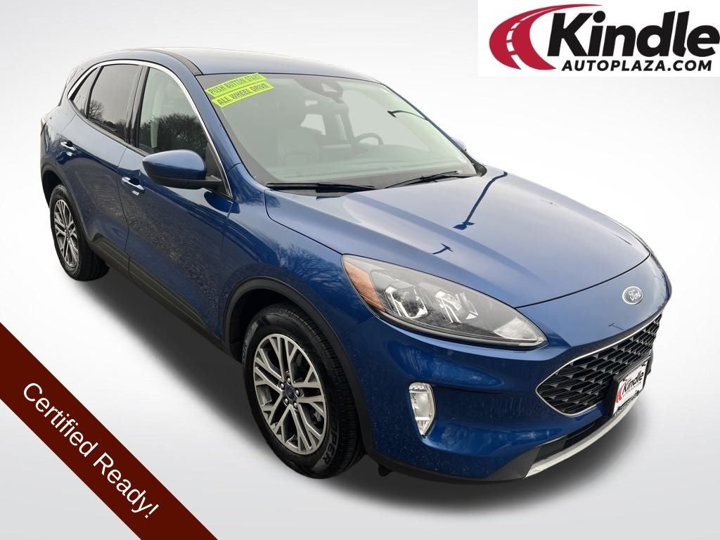 2022 Ford Escape SEL in Atlas Blue Metallic vehicle highlights include.., CERTIFIED READY, AWD, BLIS W/CROSS-PATH PROTECTION, FORD CO-PILOT 360*, REAR VIEW CAMERA w /REVERSE SENSING, REVERSE SENSING SYSTEM, DUAL AC, REMOTE START, INTELLIGENT ACCESS W/PUSH BUTTON START, REMOTE KEYLESS ENTRY, ILLUMINATED ENTRY, AUTOMATIC, HEATED STEERING WHEEL, LED SIGNATURE LIGHTING, REAR SPOILER, USB(A) & USB(C), POWER POINTS, SIRIUS XM*, 8. PREMIUM TOUCH SCREEN, FORDPASS CONNECT, SYNC®3 W/APPLINK, SUPPLEMENTAL PTC HEATER, PREMIUM FOG LIGHTS, POWERED & HEATED MANUAL FOLD MIRRORS, QUALITY, POWER DRIVER SEAT, SPORT SEATS, HEATED SEATS, LATCH* CHILD SAFETY SYSTEM, ADVANCETRAC* W/RSC, HALOGEN HEADLIGHTS, LED TAIL LIGHTS, CAPLESS FUEL EZ FILL, DUAL EXHAUST w/CHROME TIPS, ACTIVE GRILLE SHUTTERS, TIRE INFLATOR w/SEALANT KIT, T.P.M.S., SECURILOCK*, SECURICODE*, REFRESH 95, SOS POST CRASH ALERT, REAR PRIVACY GLASS, 1.5L EcoBoost, 8-Speed Automatic, AWD, 18 Machined-Face Aluminum Wheels, 6 Speakers, ABS brakes, Alloy wheels, AM/FM radio: SiriusXM, Auto High-beam Headlights, Automatic temperature control, Brake assist, Compass, Delay-off headlights, Driver vanity mirror, Electronic Stability Control, Emergency communication system: SYNC 3 911 Assist, Exterior Parking Camera Rear, Four wheel independent suspension, Front anti-roll bar, Front Bucket Seats, Front Center Armrest, Front dual zone A/C, Front fog lights, Front reading lights, Fully automatic headlights, Heated ActiveX Trimmed Front Sport Contour Bucket Seats, Heated door mirrors, Heated front seats, Heated steering wheel, Illuminated entry, Instrument Panel w/6.5 Digital Screen, Low tire pressure warning, Outside temperature display, Overhead airbag, Overhead console, Passenger vanity mirror, Power door mirrors, Power driver seat, Power Liftgate, Radio data system, Rear anti-roll bar, Rear reading lights, Rear seat center armrest, Rear window defroster, Rear window wiper, Remote keyless entry, Speed control, Speed-sensing steering, Speed-Sensitive Wipers, Split folding rear seat, Spoiler, Steering wheel mounted audio controls, Tachometer, Traction control, Trip computer, Variably intermittent wipers, Wheel-Locking Lug Nuts.