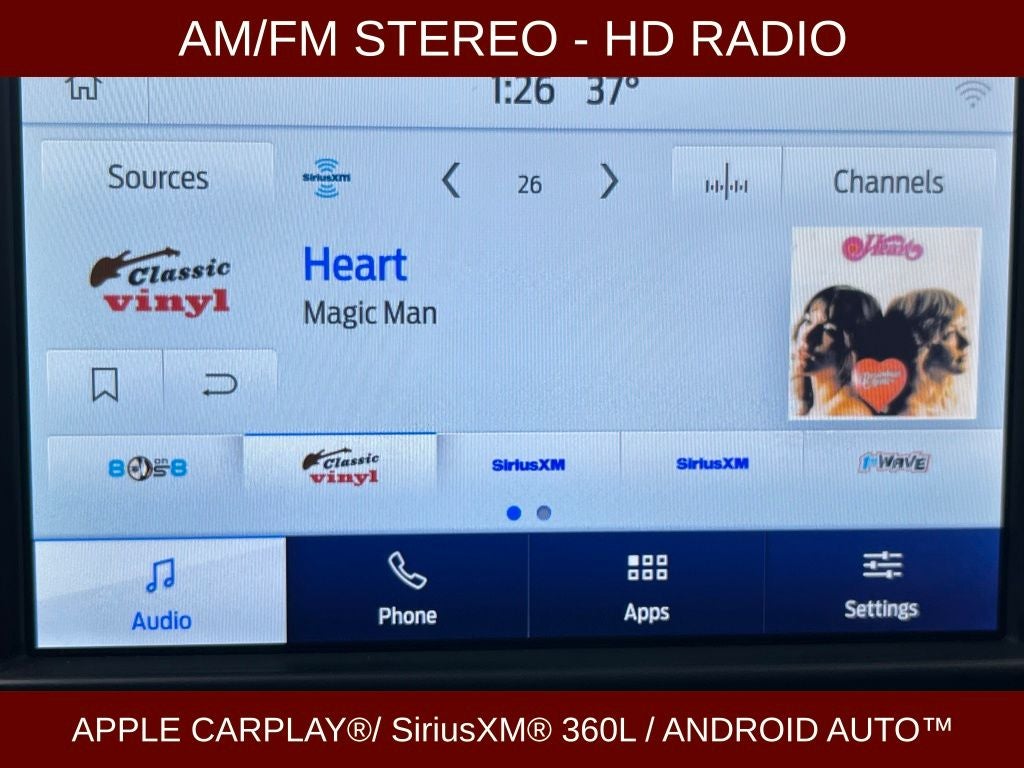 - Radio: AM/FM Stereo w/6 Speakers -inc: 2 front USB ports - 1 type A and 1 type C, dual USB rear, 8" center stack screen w/standard Bluetooth connectivity for Apple CarPlay and Android Auto