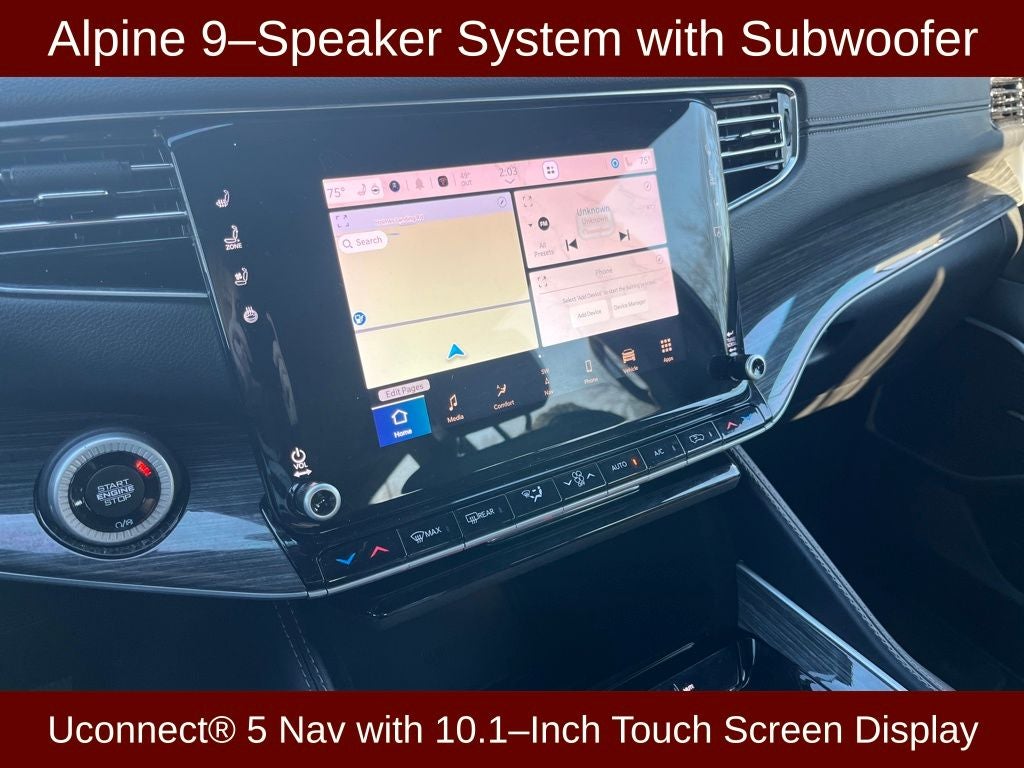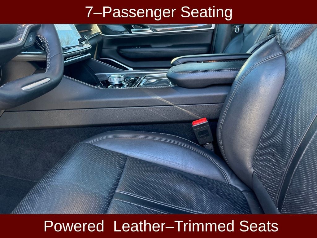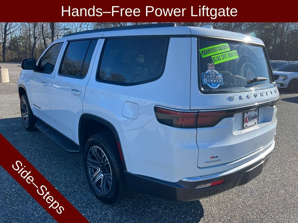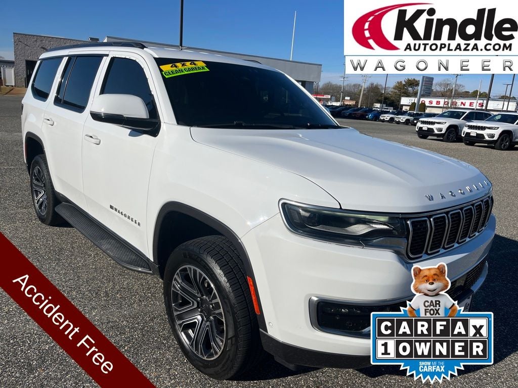 2022 Jeep Wagoneer Series III in Bright White Clearcoat vehicle highlights include.., 1 OWNER, CLEAN CAR FAX, ACCIDENT FREE, 4WD, VOICE ACTIVATED NAVIGATION w/TOUCH SCREEN, BLIS W/CROSS-PATH PROTECTION, PARKSENSE FRONT & REAR PARK ASSIST, PARKVIEW BACK UP CAMERA, FULL SPEED FORWARD COLLISION BRAKING, PEDESTRIAN WARNING, ADVANCED BRAKE ASSIST, ADAPTIVE CRUISE CONTROL, H.U.D. HEADS UP DISPLAY, ACTIVE LANE MANAGEMENT, TRI-ZONE CLIMATE CONTROL, AUTOMATIC, PREMIUM INTERIOR, PREMIUM LEATHER HEATED STEERING WHEEL, POWERED ADJUSTABLE PEDALS, RAIN SENSING WIPERS, TRAC-LOK* REAR DIFFERENTIAL, SELEC-TERRAIN SYSTEM, WIRELESS CHARGING PAD, SIRIUS XM*, 4G WIFI MODEM, WIFI HOT SPOT, HD RADIO, Bluetooth®, AUXILLARY INPUT, MEDIA HUB, 10.1 PREMIUM TOUCH SCREEN, ALPINE PREMIUM SPEAKER SYSTEM, WAGONEER CONNECT, WAGONEER CLIENT SERVICES, 7 & 4 PIN WIRING HARNESS, SIDE STEPS BY MOPAR, CLASS lV TRAILER HITCH, MIRRORS, DUAL POWER HEATED FOLDING W/MEM & SIGNAL, QUALITY, MEMORY DRIVER SEAT, POWER SEATS, SPORT SEATS, HEATED & COOLED FRONT SEATS, VENTILATED SEATS, HEATED 2ND ROW, 3RD ROW SEATIING, 2ND ROW CAPTAIN SEATS, SLIDING 2ND ROW, POWER FOLD 3rd ROW, LED AUTOMATIC HIGH/LOW BEAMS, QUADRA-LIFT* AIR SUSPENSION, T.P.M.S., SENTRY KEY, HILL START ASSIST, HILL DESCENT CONTROL, HANDS FREE LIFTGATE, 5.7L V8, 8-Speed Automatic, 3.21 Rear Axle Ratio, 3rd row seats: bench, 7-Passenger Seating, ABS brakes, Adjustable pedals, Alloy wheels, AM/FM radio: SiriusXM with 360L, Audio memory, Auto High-beam Headlights, Auto-dimming door mirrors, Auto-dimming Rear-View mirror, Auto-leveling suspension, Brake assist, Compass, Delay-off headlights, Driver vanity mirror, Driver's Seat Mounted Armrest, Electronic Stability Control, Exterior Parking Camera Rear, Flexible Seating Group, Floor Console w/Cupholder, Four wheel independent suspension, Front anti-roll bar, Front Center Armrest w/Storage, Front dual zone A/C, Front fog lights, Front reading lights, Fully automatic headlights, Garage door transmitter, Heads-Up Display, Heated door mirrors, Heated rear seats, Heated steering wheel, Illuminated entry, Leather Trimmed Bucket Seats, Low tire pressure warning, Memory seat, Navigation System, Outside temperature display, Overhead console, Pedal memory, Power adjustable front head restraints, Power door mirrors, Power Liftgate, Power Tip/Slide Recline 2nd Row Buckets, Power windows, Radio data system, Radio: Uconnect 5 Nav w/10.1 Display, Rain sensing wipers, Rear air conditioning, Rear anti-roll bar, Rear dual zone A/C, Rear reading lights, Rear seat center armrest, Rear window defroster, Rear window wiper, Reclining 3rd row seat, Remote keyless entry, Security system, Speed control, Speed-sensing steering, Speed-Sensitive Wipers, Split folding rear seat, Steering wheel memory, Steering wheel mounted audio controls, Tachometer, Telescoping steering wheel, Tilt steering wheel, Traction control, Turn signal indicator mirrors, Variably intermittent wipers, Ventilated front seats, Voltmeter, Wheels: 20 x 9.0 Premium 2 Aluminum.