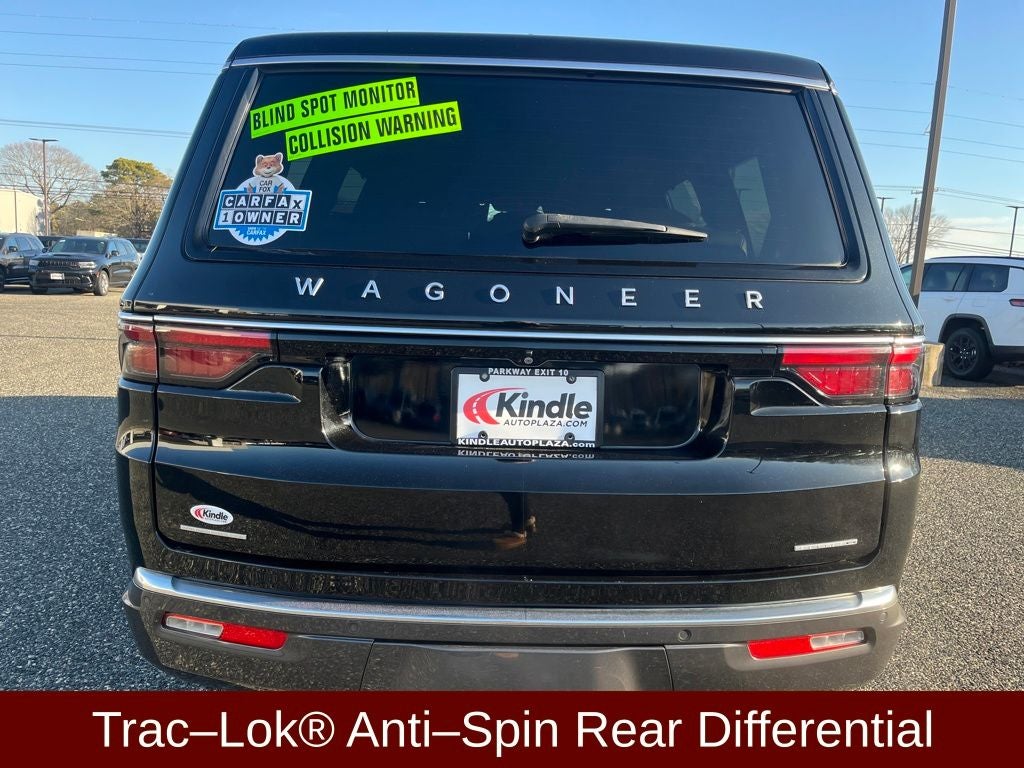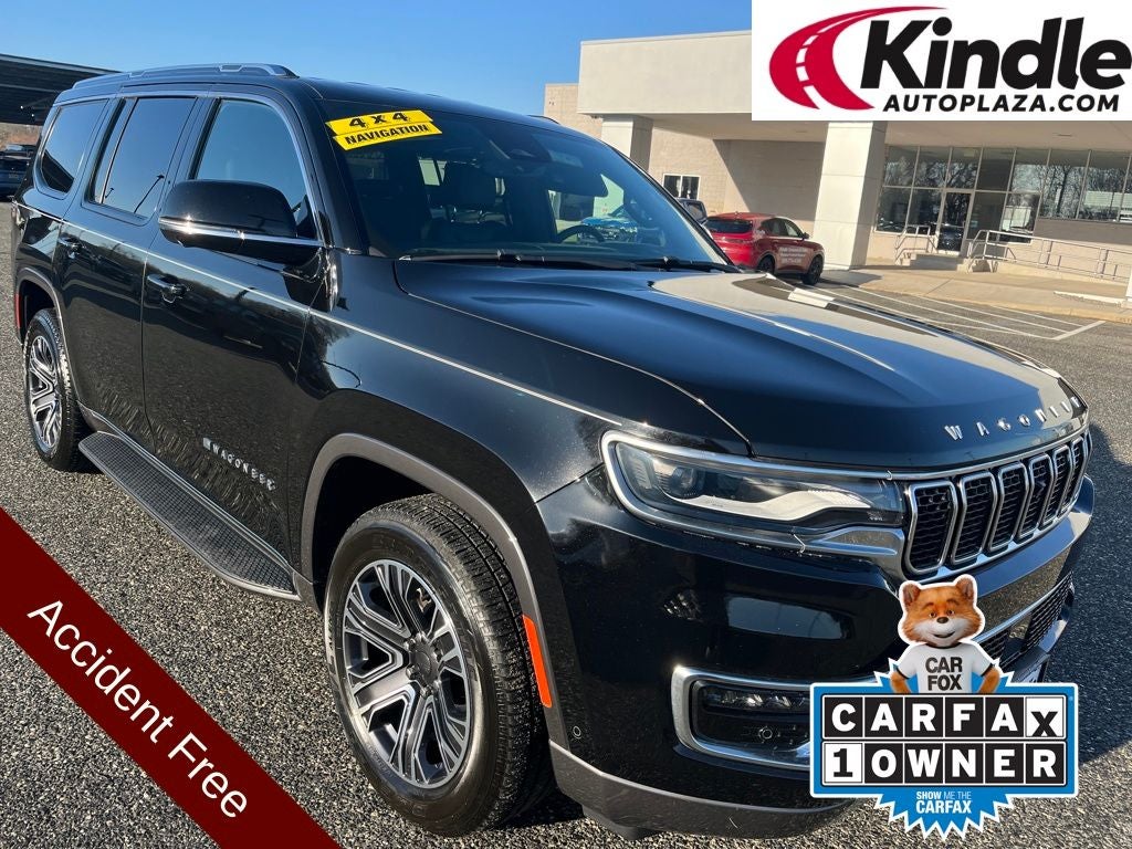 2022 Jeep Wagoneer Series III in Diamond Black Crystal Pearlcoat vehicle highlights include.., 1 OWNER, ACCIDENT FREE, 4WD, VOICE ACTIVATED NAVIGATION w/TOUCH SCREEN, BLIS W/CROSS-PATH PROTECTION, 360* CAMERA, PARKSENSE REAR PARK ASSIST, PARKVIEW BACK UP CAMERA, PARALLEL & PERPENDICULAR PARK ASSIST, PEDESTRIAN WARNING, ADAPTIVE CRUISE CONTROL, DROWSY DRIVER ALERT, INTERSECTION ASSIST, TRAFFIC SIGN RECOGNITION, H.U.D. HEADS UP DISPLAY, LANE KEEPING, TRI-ZONE CLIMATE CONTROL, REMOTE START, PUSH BUTTON IGNITION, REMOTE KEYLESS ENTRY, ILLUMINATED ENTRY, AUTOMATIC, FRONT PASSENGER INTERACTIVE DISPLAY, APPLE CAR PLAY/ANDROID AUTO, SELEC-TERRAIN SYSTEM, WIRELESS CHARGING PAD, SIRIUS XM w 360L, SATELLITE RADIO, 4G WIFI MODEM, WIFI HOT SPOT, HD RADIO, Bluetooth®, AUXILLARY INPUT, MEDIA HUB, 10.1 PREMIUM TOUCH SCREEN, ALPINE PREMIUM SPEAKER SYSTEM, WAGONEER CONNECT, CLASS lV TRAILER HITCH, MIRRORS/HEATED/AUTOFOLD/SIGNAL/DRIVER MEMORY/AUTO DIMMING/APPROACH LIGHTS, QUALITY, PREMIUM LEATHER TRIMMED SEATING, MEMORY DRIVER SEAT, POWER SEATS, SPORT SEATS, HEATED & COOLED FRONT SEATS, VENTILATED SEATS, HEATED 2ND ROW, 3RD ROW SEATIING, 2ND ROW CAPTAIN SEATS, LED AUTO HEADLIGHTS, T.P.M.S., SENTRY KEY, HILL START ASSIST, HILL DESCENT CONTROL, HANDS FREE LIFTGATE, BODY-SIDE SIDE STEPS, 2nd ROW MANUAL WINDOW SHADES, 5.7L V8, 8-Speed Automatic, 10 Speakers, 2nd Row Manual Window Shades, 3.21 Rear Axle Ratio, 3rd row seats: bench, 7-Passenger Seating, ABS brakes, Adjustable pedals, Alloy wheels, AM/FM radio: SiriusXM with 360L, Audio memory, Auto High-beam Headlights, Auto-dimming door mirrors, Auto-dimming Rear-View mirror, Auto-leveling suspension, Automatic temperature control, Brake assist, Compass, Convenience Group I, Delay-off headlights, Driver vanity mirror, Driver's Seat Mounted Armrest, Drowsy Driver Detection, Electronic Stability Control, Exterior Parking Camera Rear, Flexible Seating Group, Floor Console w/Cupholder, Four wheel independent suspension, Front anti-roll bar, Front Bucket Seats, Front Center Armrest w/Storage, Front dual zone A/C, Front fog lights, Front Passenger Interactive Display, Front reading lights, Fully automatic headlights, Garage door transmitter, Heads-Up Display, Heated door mirrors, Heated front seats, Heated rear seats, Heated steering wheel, Illuminated entry, Intersection Collision Assist System, Leather Trimmed Bucket Seats, Low tire pressure warning, Memory seat, Navigation System, Occupant sensing airbag, Outside temperature display, Overhead console, P&P Park & Unpark Assist w/Stop System, Passenger door bin, Passenger seat mounted armrest, Passenger vanity mirror, Pedal memory, Power adjustable front head restraints, Power door mirrors, Power driver seat, Power Liftgate, Power passenger seat, Power Tip/Slide Recline 2nd Row Buckets, Radio data system, Radio: Uconnect 5 Nav w/10.1 Display, Rain sensing wipers, Rear air conditioning, Rear anti-roll bar, Rear dual zone A/C, Rear reading lights, Rear seat center armrest, Rear window defroster, Rear window wiper, Reclining 3rd row seat, Remote keyless entry, Security system, Speed control, Speed-sensing steering, Speed-Sensitive Wipers, Split folding rear seat, Steering wheel memory, Steering wheel mounted audio controls, Surround View Camera System, Tachometer, Telescoping steering wheel, Tilt steering wheel, Traction control, Traffic Sign Recognition, Turn signal indicator mirrors, Variably intermittent wipers, Ventilated front seats, Voltmeter, Wheels: 20 x 9.0 Premium 2 Aluminum.