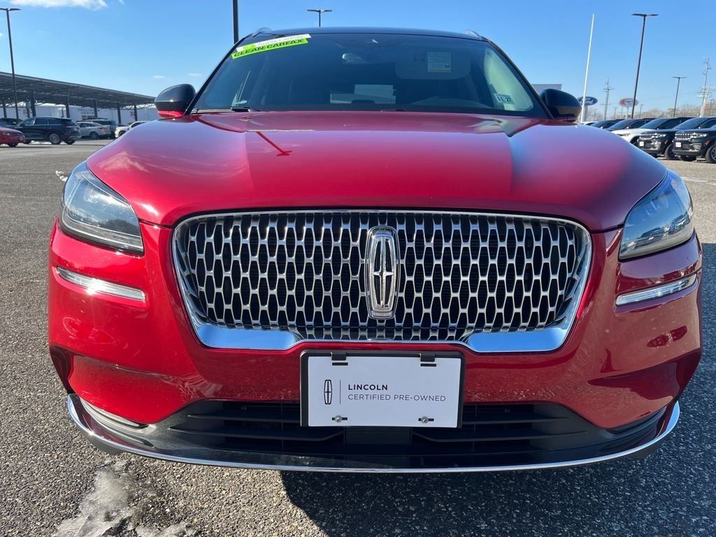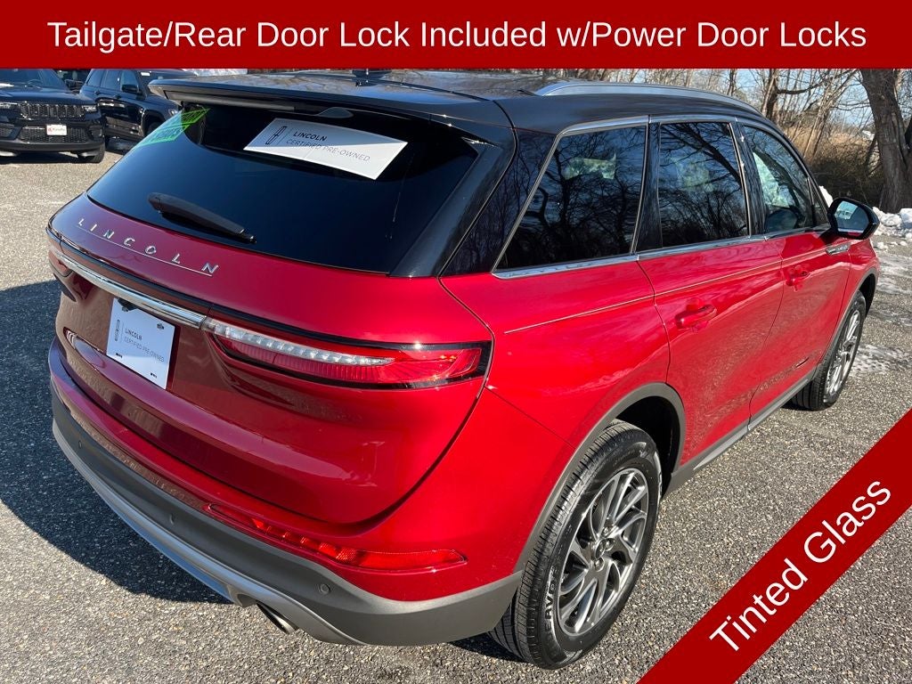 2022 Lincoln Corsair AWD in Red Carpet Metallic Tinted Clearcoat vehicle highlights include.., LINCOLN CERTIFIED, ACCIDENT FREE, AWD, BLIS W/CROSS-PATH PROTECTION, LINCOLN CO-PILOT 360*+, REAR VIEW CAMERA w /REVERSE SENSING, COLLISION MITIGATION-FRONT, REAR COLLISION WARNING, PRE COLLISION ASSIST W/AEB, DRIVER AWARE ALERT, LANE KEEPING, DUAL AC, MYKEY, PUSH BUTTON IGNITION, REMOTE KEYLESS ENTRY, ILLUMINATED ENTRY, AUTOMATIC, ELECTRIC PARK BRAKE, ELECTRIC POWERED ASSIST STEERING, SIRIUS XM*, 4G WIFI MODEM, WIFI HOT SPOT, HD RADIO, Bluetooth®, AUXILLARY INPUT, MEDIA HUB, 8. PREMIUM TOUCH SCREEN, PREMIUM AUDIO, INTEGRATED VOICE CONTROL, SYNC®3 W/APPLINK, AUTOMATIC DIMMING REAR VIEW MIRROR, BATTERY w/RUN DOWN PROTECTION, 12V DC POWER POINTS, LINCOLN SOFT TOUCH, MEMORY DRIVER SEAT, POWER SEATS, SPORT SEATS, CHILD PROOF REAR DOOR LOCKS, ADVANCETRAC* W/RSC, AUTOMATIC HEADLIGHTS, LED PROJECTOR HEADLIGHTS, LED TAIL LIGHTS, QUASI-DUAL STAINLESS STEEL EXHAUST w/CHROME TIP, GAS CHARGED SHOCKS, TRACTION CONTROL, T.P.M.S., FADE TO OFF INTERIOR LIGHT, SECURILOCK*, CARGO MANAGEMENT SYSTEM, CARGO LIGHTING, CARPET FLOORING- ALL ROWS, HILL START ASSIST, HILL DESCENT CONTROL, POWERED LIFTGATE, 2.0L I4, 8-Speed Automatic, 10 Speakers, 18 Bright Machined Aluminum Wheels, 3.81 Axle Ratio, ABS brakes, Air Conditioning, Alloy wheels, AM/FM radio: SiriusXM, Auto High-beam Headlights, Auto-dimming Rear-View mirror, Automatic temperature control, Compass, Delay-off headlights, Driver vanity mirror, Electronic Stability Control, Emergency communication system: 911 Assist, Four wheel independent suspension, Front anti-roll bar, Front Bucket Seats, Front Center Armrest, Front dual zone A/C, Front reading lights, Fully automatic headlights, Heated door mirrors, Heated front seats, Illuminated entry, Low tire pressure warning, Memory seat, Micro-Perforated Lincoln Soft Touch Seats, Occupant sensing airbag, Outside temperature display, Overhead console, Panic alarm, Passenger vanity mirror, Power door mirrors, Power Liftgate, Power passenger seat, Radio data system, Radio: Lincoln Premium Audio System w/MP3, Rear anti-roll bar, Rear Parking Sensors, Rear reading lights, Rear seat center armrest, Rear window defroster, Rear window wiper, Remote keyless entry, Roof rack: rails only, Security system, SiriusXM Radio, Speed control, Speed-sensing steering, Speed-Sensitive Wipers, Split folding rear seat, Spoiler, Steering wheel mounted A/C controls, Steering wheel mounted audio controls, SYNC 3 Communications & Entertainment System, Tachometer, Traction control, Trip computer, Variably intermittent wipers.