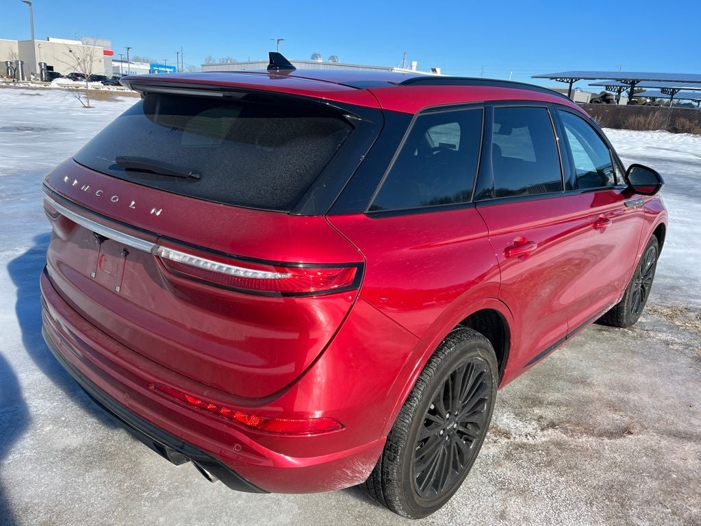 2023 Lincoln Corsair Reserve in Red Carpet Metallic Tinted Clearcoat vehicle highlights include.., LINCOLN CERTIFIED, 1 OWNER, CLEAN CAR FAX, AWD, VOICE ACTIVATED NAVIGATION w/TOUCH SCREEN, BLIS W/CROSS-PATH PROTECTION, REAR VIEW CAMERA w /REVERSE SENSING, ADAPTIVE CRUISE CONTROL, PRE COLLISION ASSIST W/AEB, LANE KEEPING, DUAL AC, INTELLIGENT ACCESS W/PUSH BUTTON START, REMOTE KEYLESS ENTRY, ILLUMINATED ENTRY, AUTOMATIC, AMBIENT LIGHTING, DAY TIME RUNNING LAMPS, LINCOLN DRIVE MODES, 13.2 PREMIUM TOUCH SCREEN, LINCOLN CONNECT, SYNC4 w/ENHANCED VOICE RECOGNITION, FRAMELESS AUTOMATIC REAR VIEW, MIRRORS/HEATED/AUTOFOLD/SIGNAL/DRIVER MEMORY/AUTO DIMMING/APPROACH LIGHTS, QUALITY, MEMORY DRIVER SEAT, POWER SEATS, SPORT SEATS, HEATED SEATS, ADVANCETRAC* W/RSC, LED TAIL LIGHTS, LED JEWELED HEADLIGHTS, CAPLESS FUEL EZ FILL, DUAL EXHAUST w/CHROME TIPS, T.P.M.S., SECURILOCK*, CARGO MANAGEMENT SYSTEM, PARTICULATE AIR FILTER, ROOF RACKS, POWERED LIFTGATE, SOS POST CRASH ALERT, REAR PRIVACY GLASS, ANTI-THEFT SYSTEM, 2.0L Turbocharged, 8-Speed Automatic, 10 Speakers, ABS brakes, Air Conditioning, Alloy wheels, AM/FM radio: SiriusXM, Auto High-beam Headlights, Auto-dimming Rear-View mirror, Automatic temperature control, Body-Color Exterior Elements, Brake assist, Compass, Delay-off headlights, Electronic Stability Control, Emergency communication system: SYNC 4 911 Assist, Four wheel independent suspension, Front anti-roll bar, Front Bucket Seats, Front Center Armrest, Front dual zone A/C, Front reading lights, Fully automatic headlights, Heated door mirrors, Heated front seats, Illuminated entry, Jet Appearance Package, Leather steering wheel, Low tire pressure warning, Memory seat, Navigation system: Connected Navigation (3-year trial), Occupant sensing airbag, Outside temperature display, Overhead airbag, Overhead console, Passenger vanity mirror, Pillar Black Exterior Elements, Power door mirrors, Power driver seat, Power Liftgate, Power passenger seat, Premium Leather Heated Comfort Seats, Radio data system, Radio: Lincoln Premium Audio System w/MP3, Rear anti-roll bar, Rear Parking Sensors, Rear reading lights, Rear seat center armrest, Rear window defroster, Remote keyless entry, Roof rack: rails only, Security system, SiriusXM Radio, Speed control, Speed-sensing steering, Split folding rear seat, Spoiler, Steering wheel mounted A/C controls, Steering wheel mounted audio controls, SYNC 4 Communications & Entertainment System, Tachometer, Traction control, Trip computer, Wheels: 20 Black Aluminum.