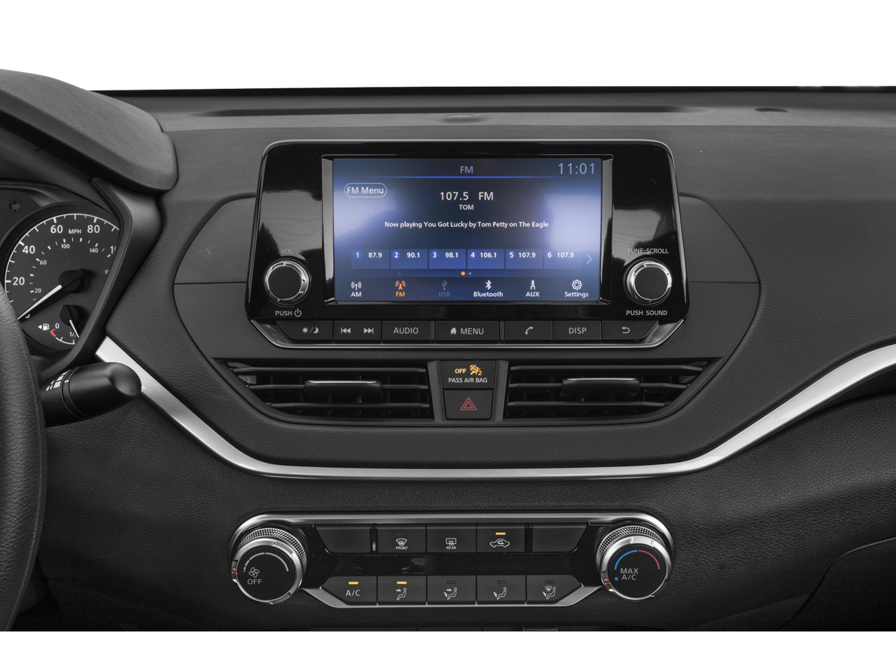- Radio: AM/FM Audio System -inc: RDS, MP3 and aux-in, 6 speakers, 7" color touch-screen display audio system, Bluetooth hands-free phone system, streaming audio via Bluetooth, hands-free text messaging assistant, 1 front illuminated USB ports (type-A) for compatible devices, Siri Eyes Free and Google Assistant voice recognition