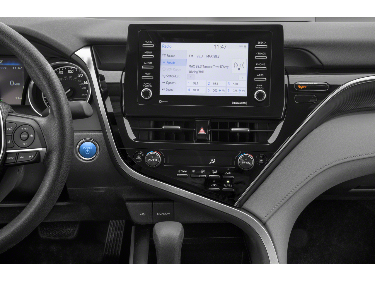 2023 Toyota Camry Hybrid XLE in Gray vehicle highlights include.., 1 OWNER, FWD, BLIS W/CROSS-PATH PROTECTION, ADAPTIVE CRUISE CONTROL, PRE COLLISION ASSIST W/AEB, ROAD SIGN ASSIST, ACTIVE LANE MANAGEMENT, DUAL AC, SMART KEY, INTELLIGENT ACCESS W/PUSH BUTTON START, REMOTE KEYLESS ENTRY, ILLUMINATED ENTRY, AUTOMATIC, SMART CHARGING USB, FRONT & REAR USB, HOMELINK, 4G WIFI MODEM, WIFI HOT SPOT, HD RADIO, Bluetooth®, 9. PREMIUM TOUCH SCREEN, HANDS FREE PHONE & AUDIO, QUALITY, PREMIUM LEATHER TRIMMED SEATING, POWER SEATS, SPORT SEATS, HEATED SEATS, LED AUTO HEADLIGHTS, SMART GUAGE, FUEL EFFICIENT, CARGO FLOOR MAT, ALL WEATHER FLOOR LINERS, 44 MPG(City) 47MPG (Highway), 2.5L I4 DOHC 16V, eCVT, 6 Speakers, 8.0J x 18 Alloy Wheels, ABS brakes, Air Conditioning, All Weather Floor Liners/Cargo Tray (TMS), Alloy wheels, AM/FM radio: SiriusXM, Apple CarPlay/Android Auto, Auto High-beam Headlights, Auto-dimming Rear-View mirror, Automatic temperature control, Brake assist, Delay-off headlights, Driver vanity mirror, Electronic Stability Control, Emergency communication system: Safety Connect (1-year trial), Exterior Parking Camera Rear, Four wheel independent suspension, Front anti-roll bar, Front Bucket Seats, Front Center Armrest, Front dual zone A/C, Front reading lights, Fully automatic headlights, Garage door transmitter: HomeLink, Heated door mirrors, Heated front seats, Illuminated entry, Leather steering wheel, Low tire pressure warning, Multi-Stage Heated Front Bucket Seats, Occupant sensing airbag, Outside temperature display, Overhead console, Panic alarm, Passenger vanity mirror, Perforated Leather Seat Trim, Power door mirrors, Power passenger seat, Radio data system, Radio: Audio Plus, Rear anti-roll bar, Rear reading lights, Rear seat center armrest, Rear window defroster, Remote keyless entry, Security system, Speed control, Speed-sensing steering, Split folding rear seat, Steering wheel mounted audio controls, Traction control, Trip computer, Turn signal indicator mirrors, Variably intermittent wipers.
